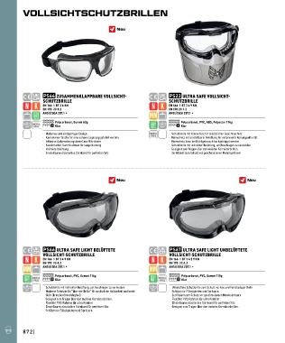 · Schutzbrille mit indirekter Belüftung, um Beschlagen zu vermeiden · Unbelüftete Schutzbrille zum Schutz vor Gas und Feinstaubpartikeln